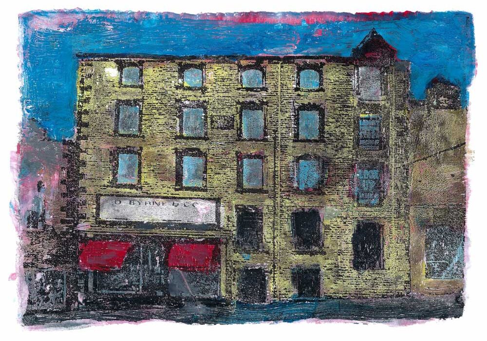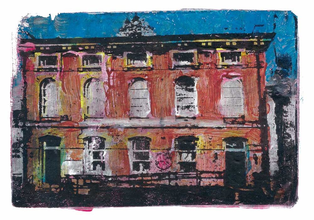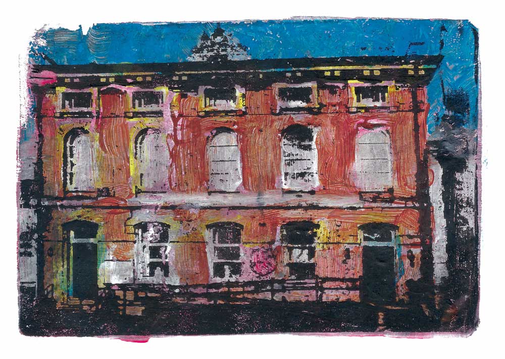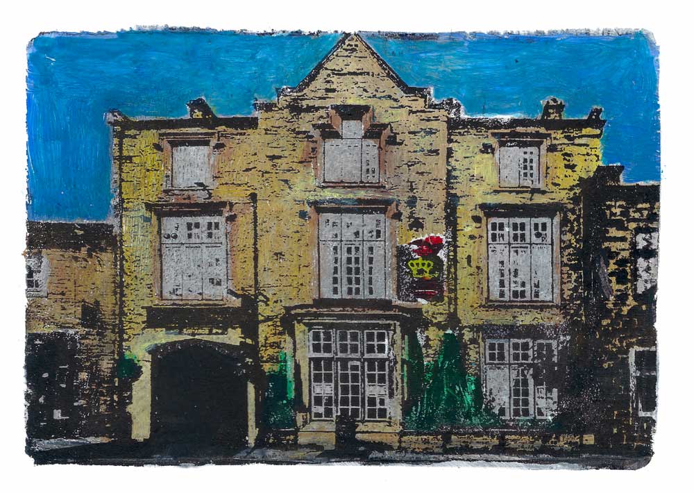 These are gel-prints worked into with acrylic paints. They are part of a series of the historic buildings in Clitheroe Town centre which I will to add to over the next year.